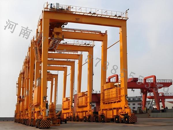 這是 RTG 最核心的優勢 —— 其行走依賴輪胎(通常為 8~16 個大型工程輪胎),無需在堆場鋪設固定軌道,對場地基礎要求更低: