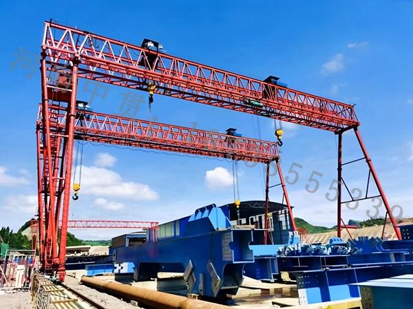 龍門吊:具有龍門式的框架結(jié)構(gòu),由兩根高大的支腿和上方的橫梁組成,外形像一個(gè) “門” 字。支腿通常采用箱型結(jié)構(gòu)或桁架結(jié)構(gòu),以承受較大的載荷,橫梁上安裝有起升機(jī)構(gòu)和運(yùn)行機(jī)構(gòu)。
