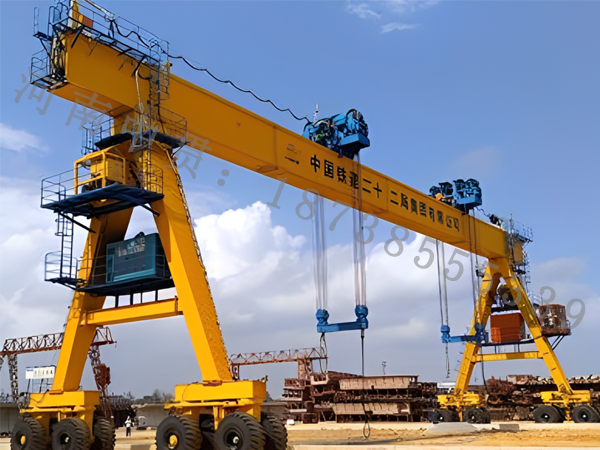 浙江杭州輪胎門式起重機廠家(18738555339)輪胎式集裝箱門式起重機是集裝箱貨物堆碼作業的專用機械。它由門形支架、動力傳動體系、起升組織、大車運轉組織、小車運轉組織及伸縮式吊具等組成。