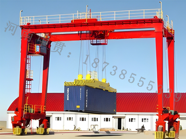浙江杭州輪胎門式起重機廠家(18738555339)輪胎式集裝箱門式起重機是集裝箱貨物堆碼作業的專用機械。它由門形支架、動力傳動體系、起升組織、大車運轉組織、小車運轉組織及伸縮式吊具等組成。