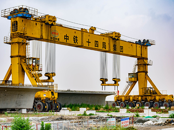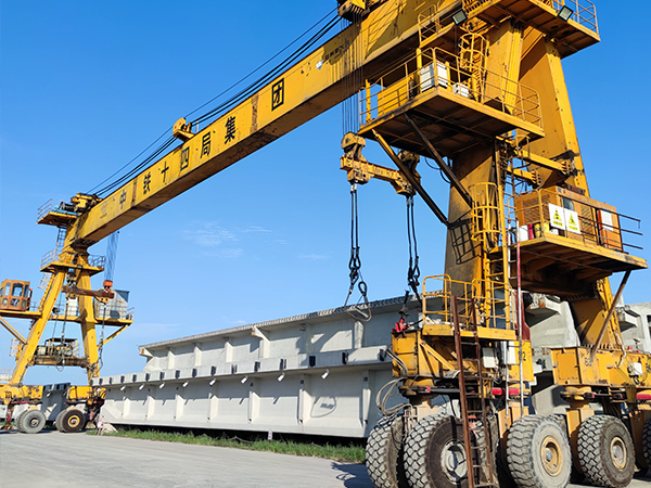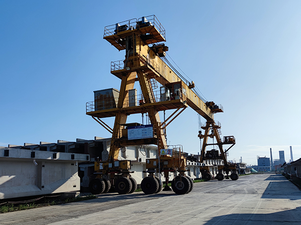 提梁機(jī)既可兩臺(tái)配合抬吊預(yù)制梁,也可以單臺(tái)起重機(jī)配雙吊具起吊預(yù)制梁,兩臺(tái)同時(shí)起重的提梁機(jī)各自的起重量一般為450噸,單臺(tái)起重的提梁機(jī)起重量通常可達(dá)900噸。它配置支腿行走、天車行走及天車起吊設(shè)備,可以實(shí)現(xiàn)全方位機(jī)械化動(dòng)作。主要用于將預(yù)制梁從制梁臺(tái)提吊至存梁臺(tái)位,預(yù)制梁養(yǎng)護(hù)完成后將其從存梁臺(tái)位吊運(yùn)到運(yùn)梁車上。作為起重設(shè)備完成架橋機(jī)的組裝和拆卸。還用于架設(shè)墩身不高的旱橋。