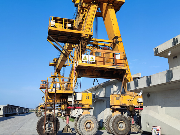 采用輪胎作為承載部件,因?yàn)檩喬ゾ哂休^好的彈性和緩沖性能,能夠減少設(shè)備在不平路面行駛時(shí)的沖擊和振動(dòng),提高設(shè)備的穩(wěn)定性和平順性。輪胎的彈性還能夠增大接地面積,提供更好的支撐力,使得提梁機(jī)能夠在各種復(fù)雜的地形條件下靈活行駛。