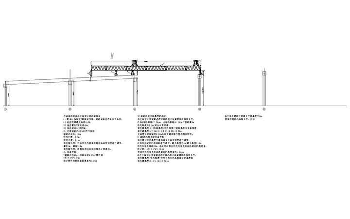 這類架橋機不能自行,需用機車頂推。其前臂用來吊梁,后臂吊平衡重,前后臂都不能在水平面內擺動。架橋時,常須用特制80噸小平車將梁片運到架橋機前臂的吊鉤之下(稱為“喂梁”)才能起吊;為使調車作業方便,每需在橋頭鋪設岔線。架橋機將梁吊起后,軸重增大,而橋頭的新建路堤比較松軟,因此,對架橋機吊梁行車地段必須采取加固措施,如用重車壓道,加插軌枕等。